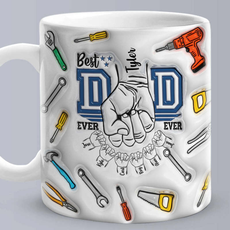 Best Dad Ever Father's Day Gifts Custom 1-6 Kids Personalized Names 3D Inflated Effect Printed Mug