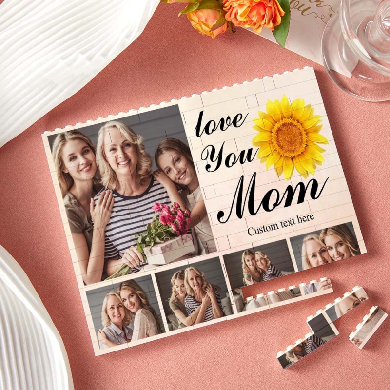 Custom Building Block Puzzle Horizontal Trio Photo Brick Love You Mom Mother's Day Gift