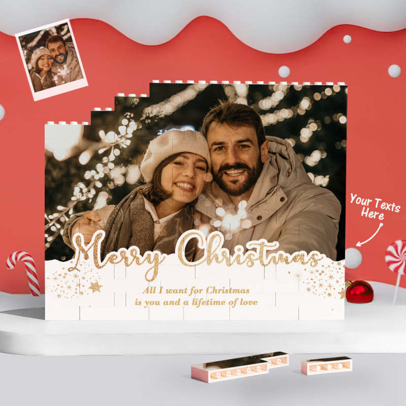 Custom Building Block Puzzle Personalized Horizontal Trio Photo Brick Christmas Gift for Lover