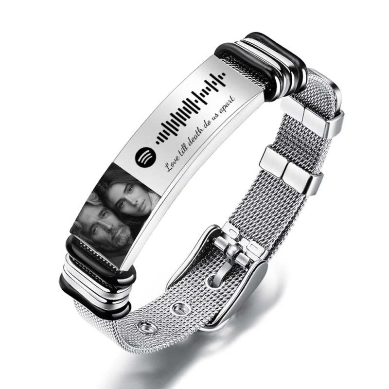 Custom Scannble Code Bracelet with Personalized Photo Memorial Father DadValentine's Day