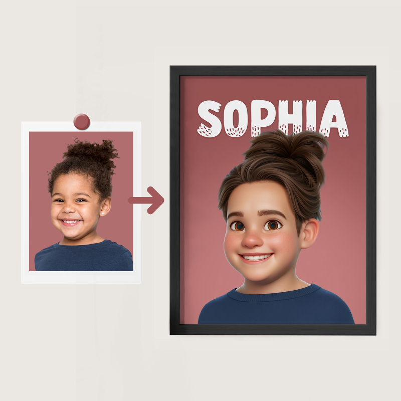 Movie Poster Frame Personalized Animation Print From Your Photo Cartoon Art Portrait Painting, Birthday Gift For Boy Girl