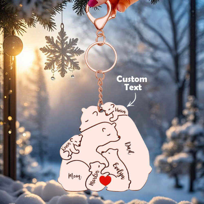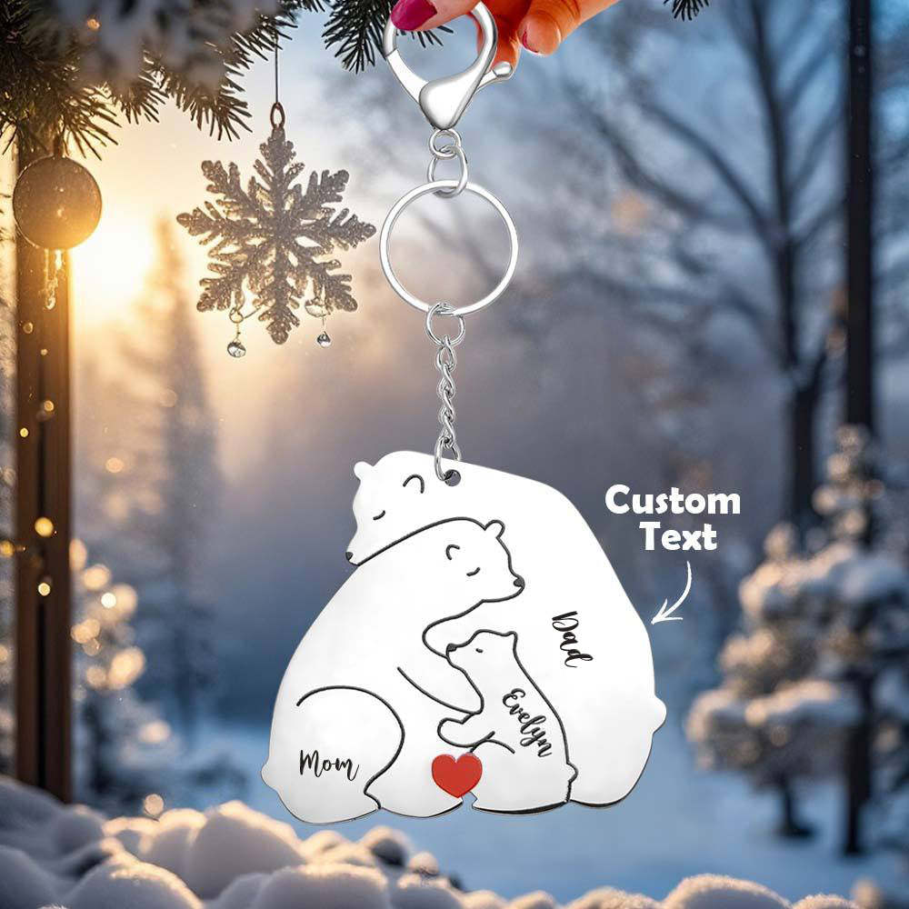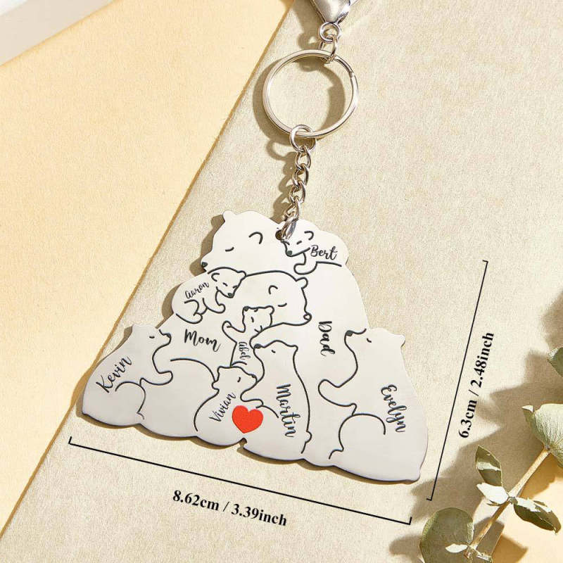 Personalized Engraved Papa Mama Bear Keychain Family Keepsake Gift for Dad Mom