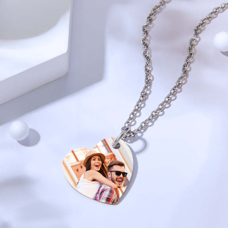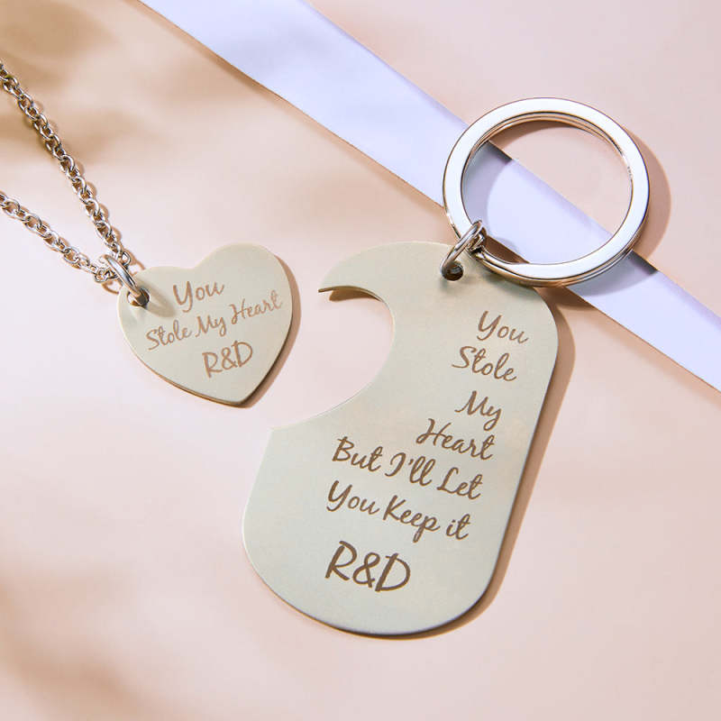 Personalized Photo Steal My Heart Couple Keychain Custom Engraved Keychain Necklace Set for CouplesValentine's Day