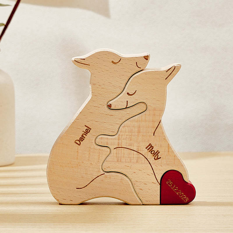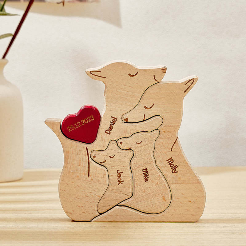 Personalized Wooden Fox Custom Family Member Names Puzzle Home Decor Gifts