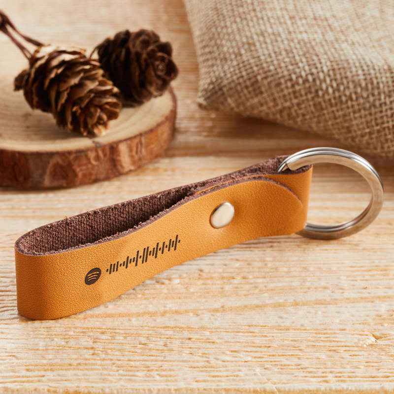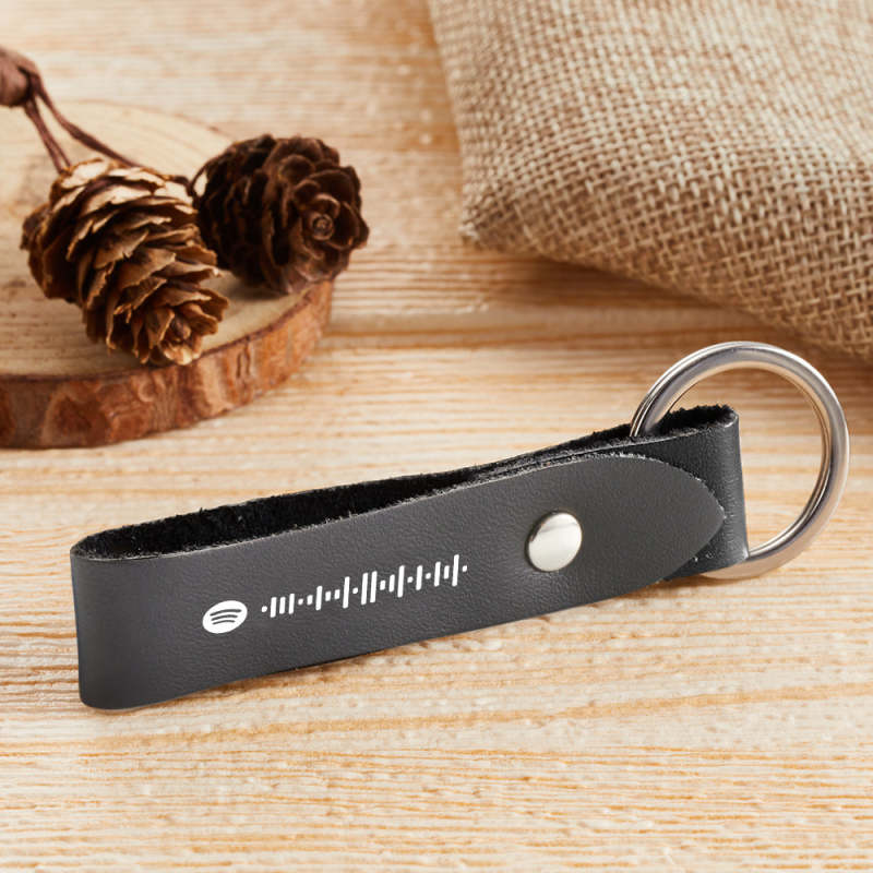 Custom Scannable Spotify Code Leather Keychain Personalized Music Song Key Chain Memorial Gifts for Him