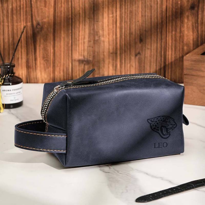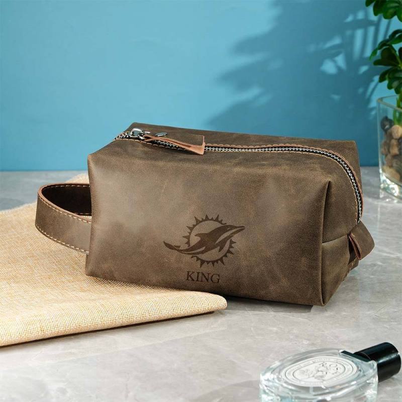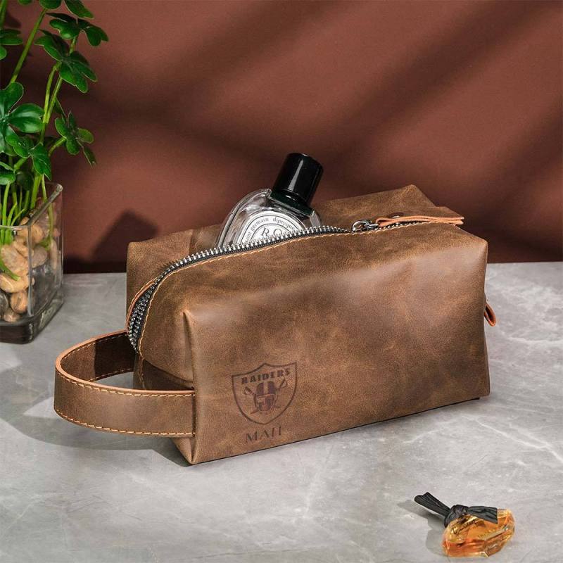 Personalized Leather Toiletry Bag Men's for Football Players, Custom Leather Dopp Kits for Football Teams, Fathers Day Gift Him Dad Father