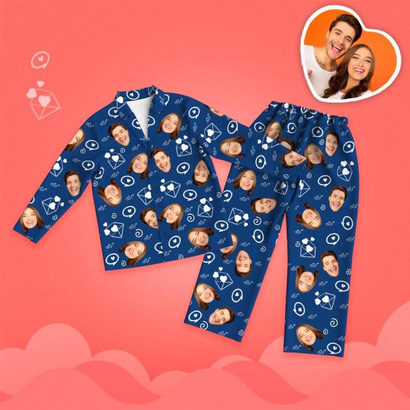 Valentine's Day Custom Face Love And Message Printed Long Sleeve Pajamas Set