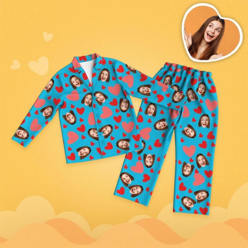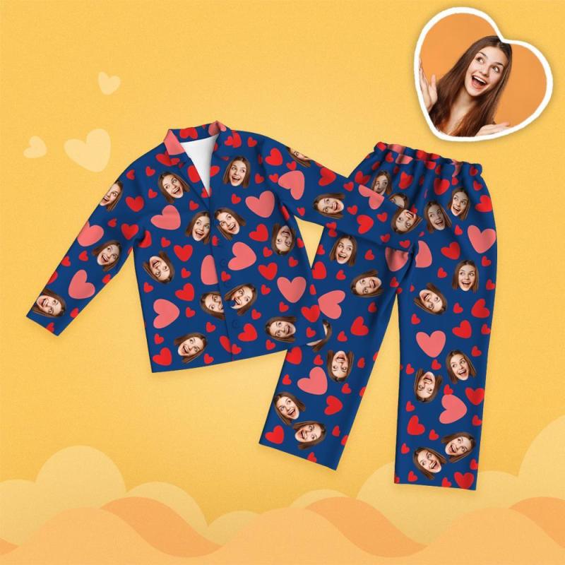 Valentine's Day Custom Face Red Heart Printed Long Sleeve Pajamas