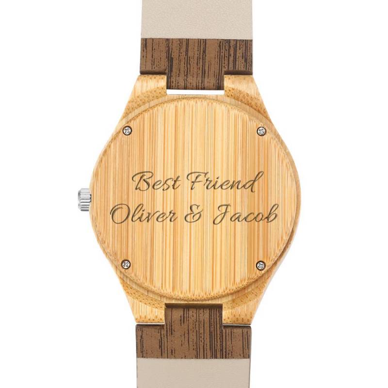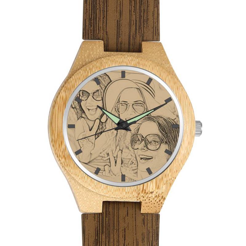 Women's Engraved Bamboo Photo Watch Wooden Leather Strap 40mm